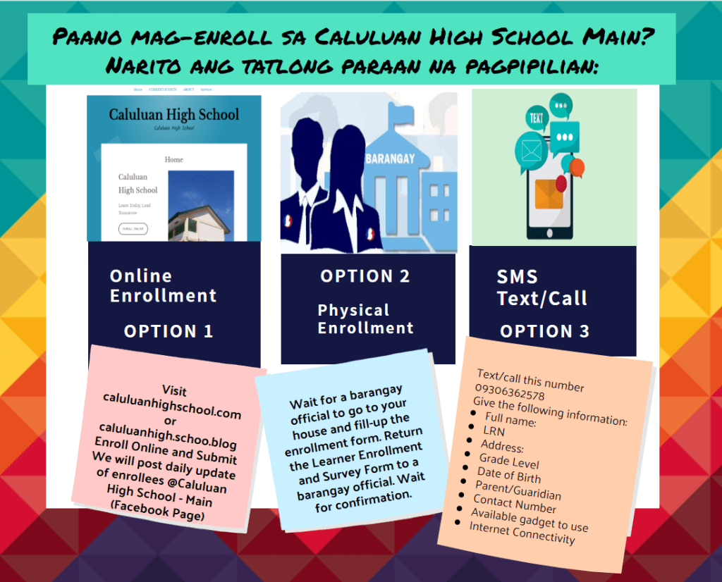 Option 1 – Magpunta sa > caluluanhighschoo.com/ at i-click ang enroll offline